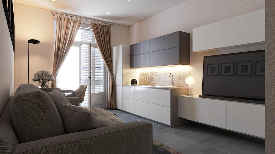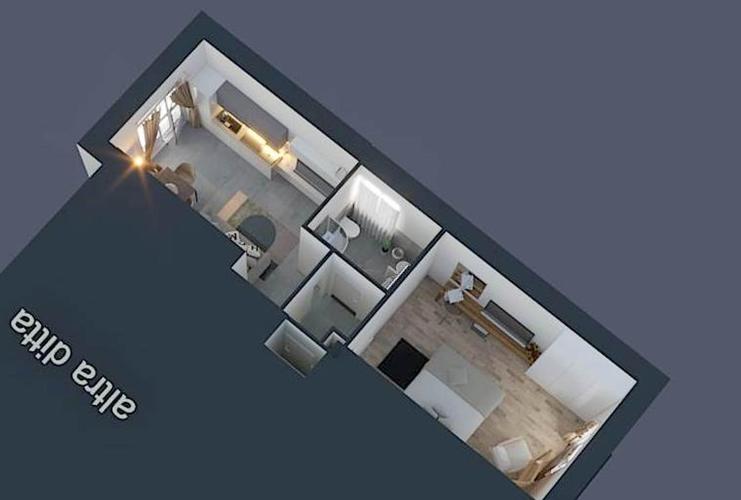 L'immobile è composto da ingresso, soggiorno con angolo cottura, camera matrimoniale, bagno con doccia walk-in, ripostiglio, balcone e terrazzino con affaccio tranquillo su cortile interno.