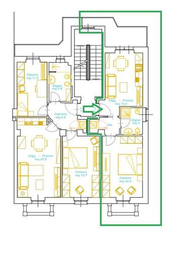 E' possibile acquistare nello stesso stabile anche un adiacente trilocale totalmente ristrutturato a nuovo, trilocale al piano rialzato con cortile privato o unico appartamento di 147 mq al primo piano.